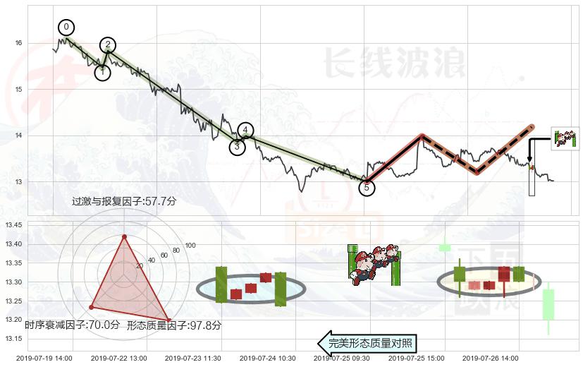 ➢ 🕰 价格走势在2019-07-26 09:30:00至2019-07-26 14:00:00期间形成下降三部曲(降势三鹤),残存影响值:-6.01