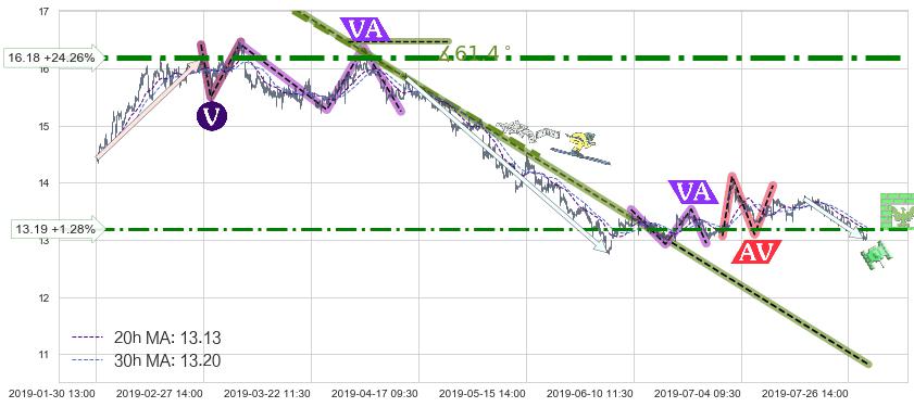 ♘ 阻力价格位13.19,可信任强度67.86%,距离最后交易2019-07-31 15:00形成的收盘价格13.02相差 +1.28%