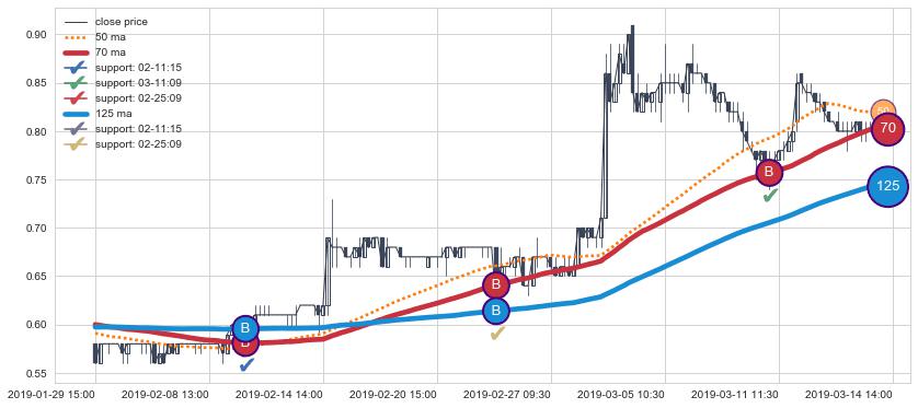 ➢ 最优均线组合共正确确认支撑阻力信号6处,正确确认率 50.00%