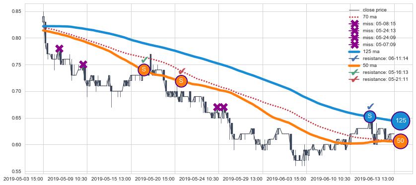 ➣ 70小时均线于(06-28 15:00: 0.6191)形成【死叉】基于【死叉历史模型】预测死叉后最低波谷价格: 0.5779, 死叉后最低价格0.5500,已经下跌超出预测最低波谷价格, 预期反弹