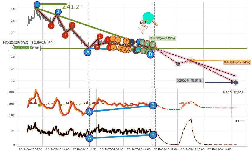 ➣ 预测:2019-08-30 15:00,【试探阻力】稳定目前下跌趋势的前提下,预测价格:0.46833