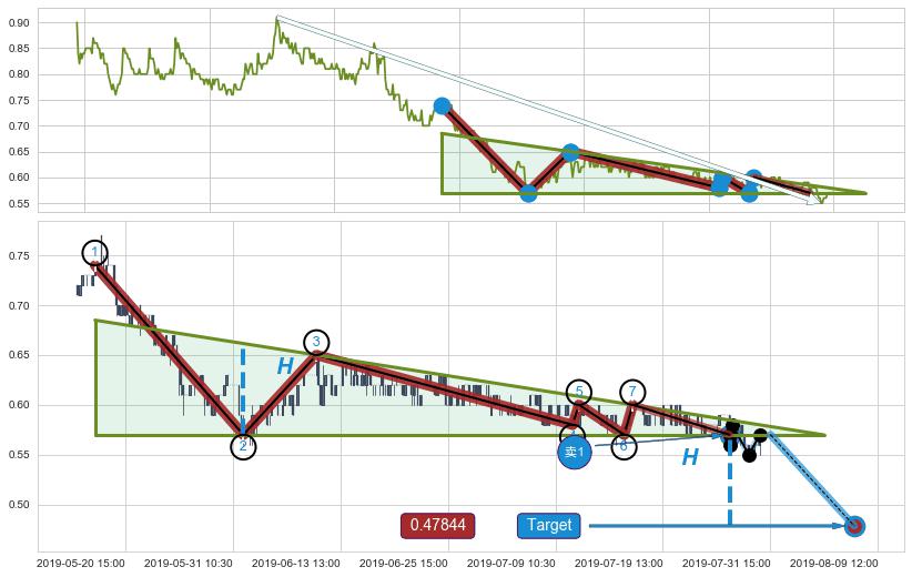 ➢ 最小中继整理涨幅→𝐇: 0.0800000 (𝐇楔型旗杆的长度:楔型起点→顶点)