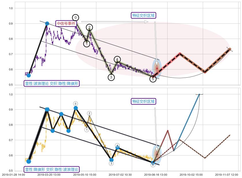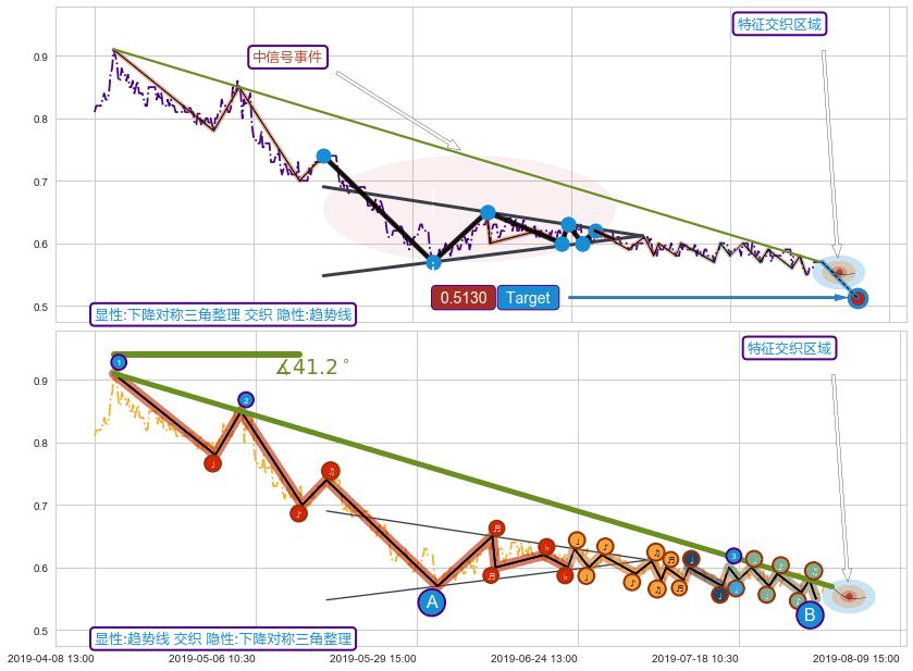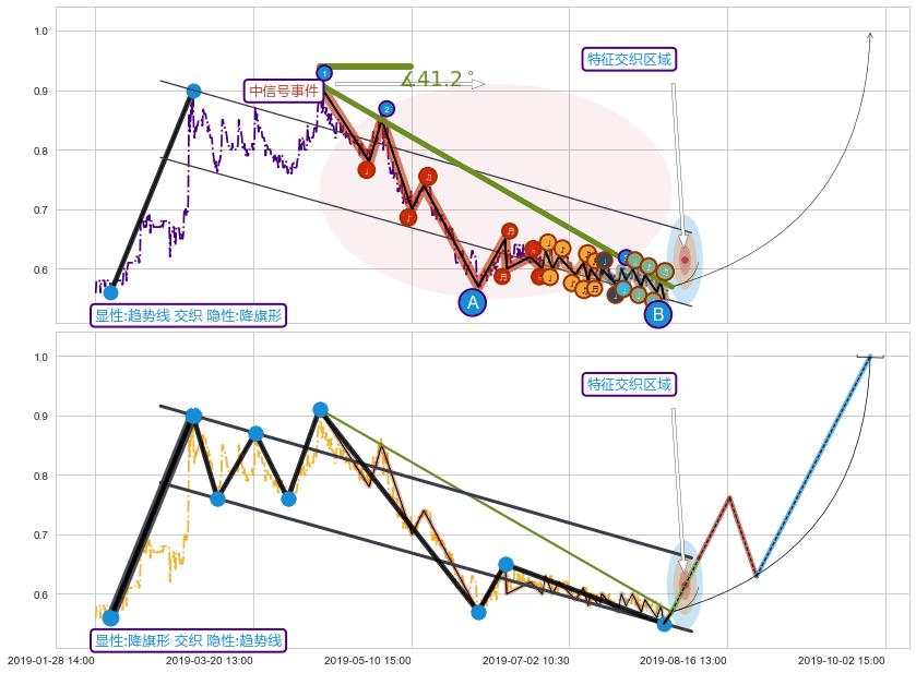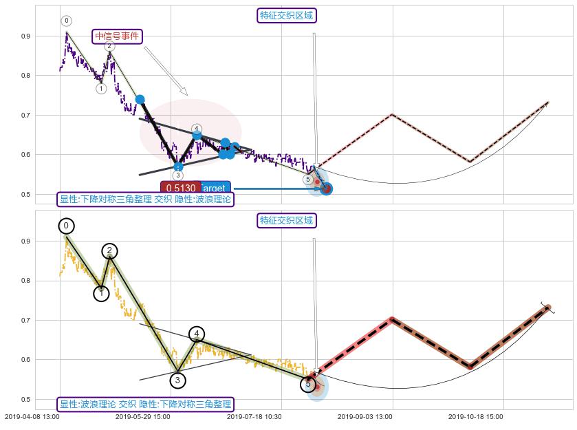➢ 下降对称三角整理属【中级别信号事件】波浪理论属【长级别信号事件】中长周期组合信号事件,中长事件长度比41.16%