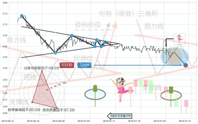 ➢ 趋势线下跌趋势面临突破上涨 🔜 下降对称三角整理临近target支撑拐点上涨 综合量化分数:51.99 【中性】