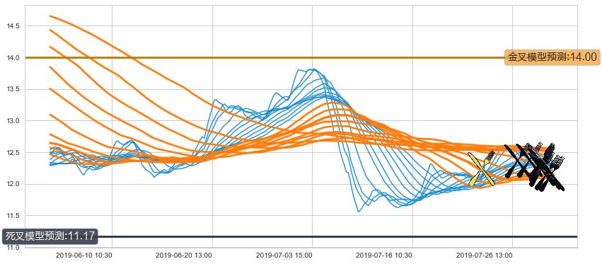 ➣ 70小时均线于(07-30 15:00: 12.22)形成【死叉】基于【死叉历史模型】预测死叉后最低波谷价格: 11.13, 死叉后最低价格12.02,尚未达到预测最低波谷价格, 预期继续下跌