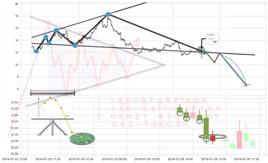 ➢ 🕰 价格走势在2019-07-18 10:30:00至2019-07-18 11:30:00期间形成顶部尽头线(下山虎),残存影响值:-1.69