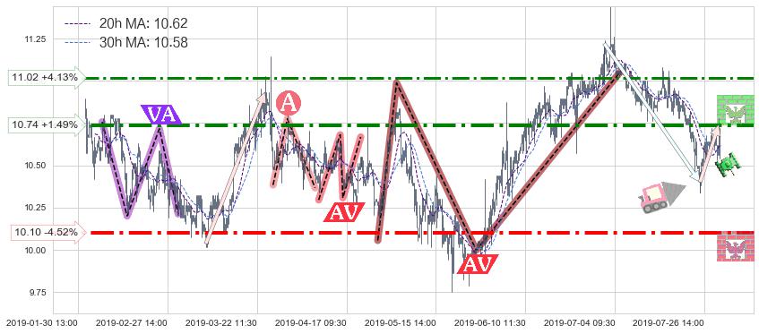 ♘ 阻力价格位10.74,可信任强度77.37%,距离最后交易2019-07-31 15:00形成的收盘价格10.58相差 +1.49%