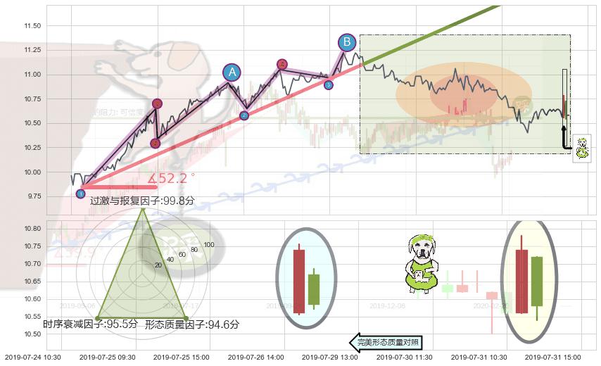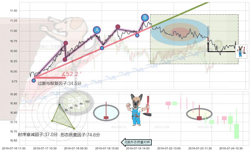 从2019-05-23 15:00至2019-07-04 09:30,共包含164个小时,阶段股价上涨12.03%,阶段股价变动位移路程比: 1 : 4,上涨趋势角度: 52.2