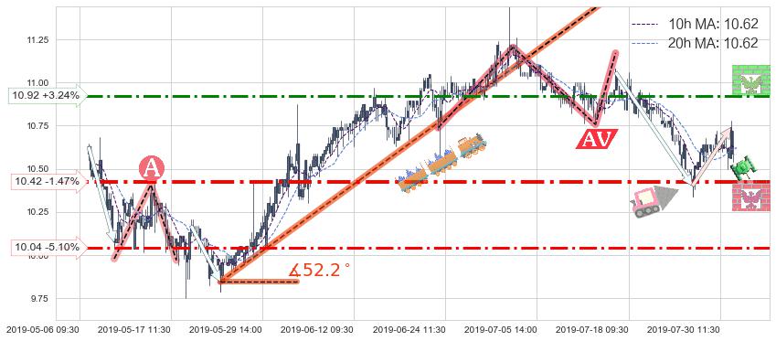 ♘ 支撑价格位10.42,可信任强度75.13%,距离最后交易2019-07-31 15:00形成的收盘价格10.58相差 -1.47%
