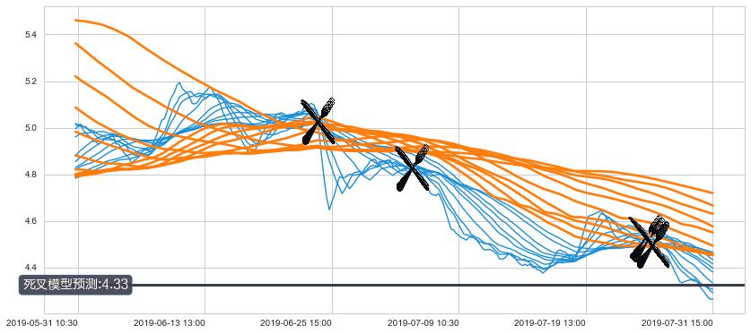 📉 多条均线基于【死叉历史模型】预测最低波谷价格的平均值: 4.33
