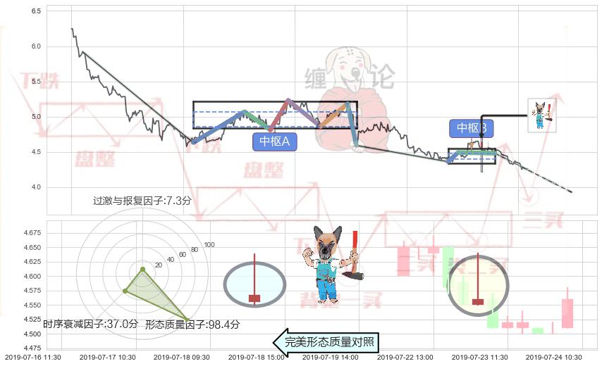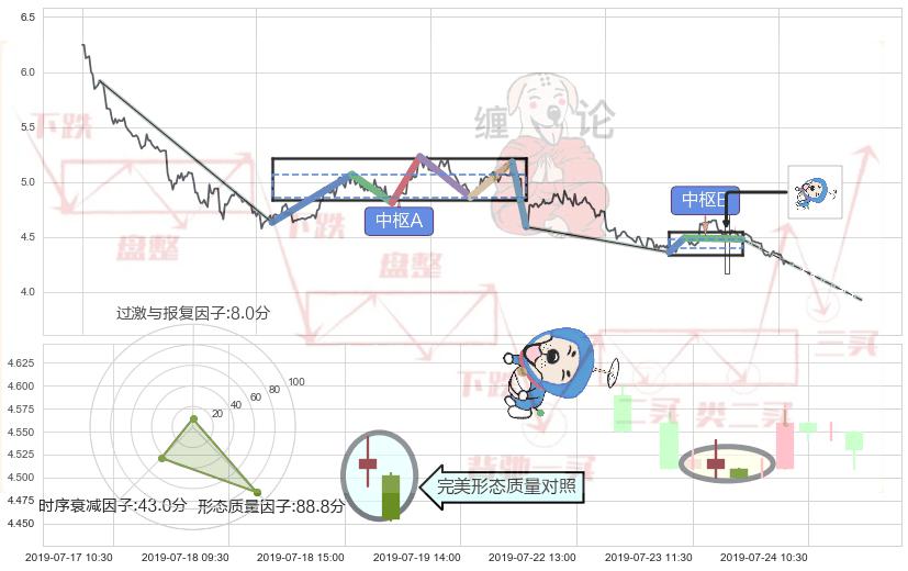 ➣ 下跌螺旋桨 + 缠论中枢点破位中枢B支撑下拉信号叠加后【目标达成率】中等,【看空】信号叠加【存续影响中等】