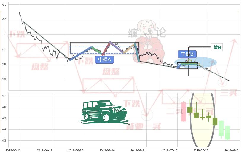 ➢ 缠论中枢点:猜想破位中枢B后持续下拉 → 下跌 → 破位中枢B支撑 → 持续趋势跟踪