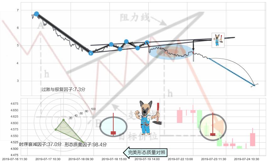 ➢ 🕰 价格走势在2019-07-23 09:30:00至2019-07-23 09:30:00期间形成看跌(高位倒锤头)流星线,残存影响值:-3.24