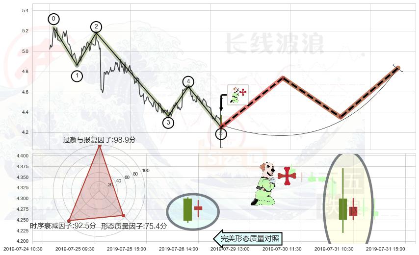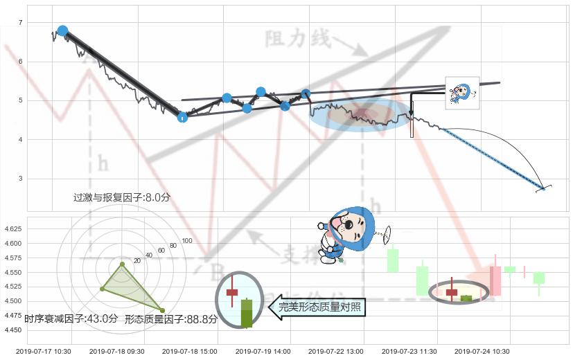 ➢ 🕰 价格走势在2019-07-22 00:00:00至2019-07-26 00:00:00期间形成高档五阴线,残存影响值:-4.33