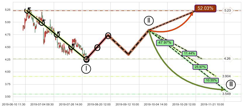 ➣ 循环浪继续向下【平均值】位置(11-14:12, 3.904),匹配聚类样本比例54.15%, 可能性概率25.97%