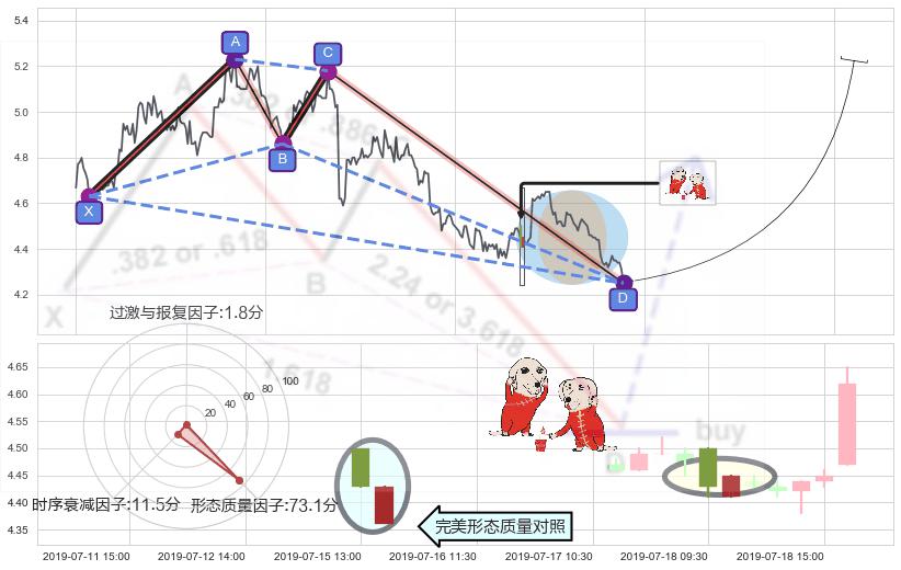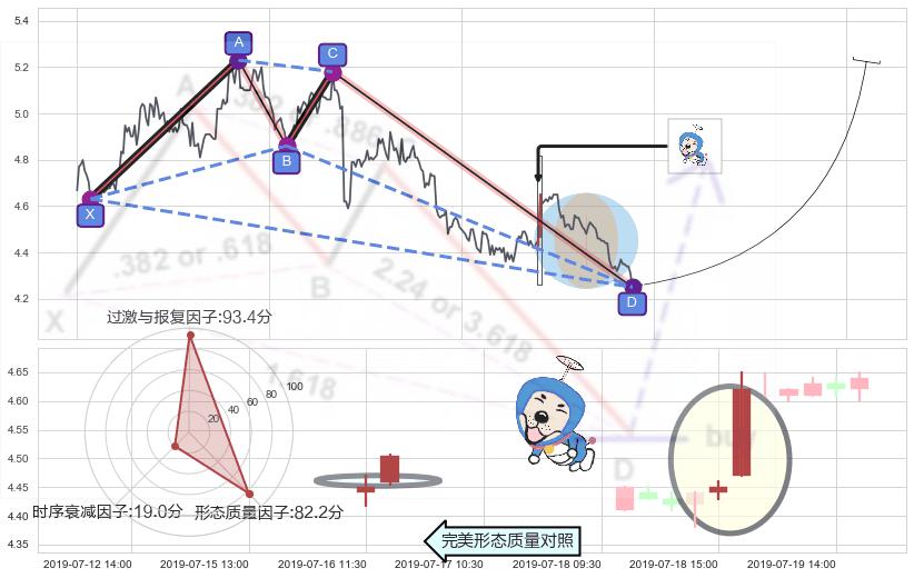 ➢ 🕰 价格走势在2019-07-18 15:00:00至2019-07-19 09:30:00期间形成上涨螺旋桨形态,残存影响值:4.87