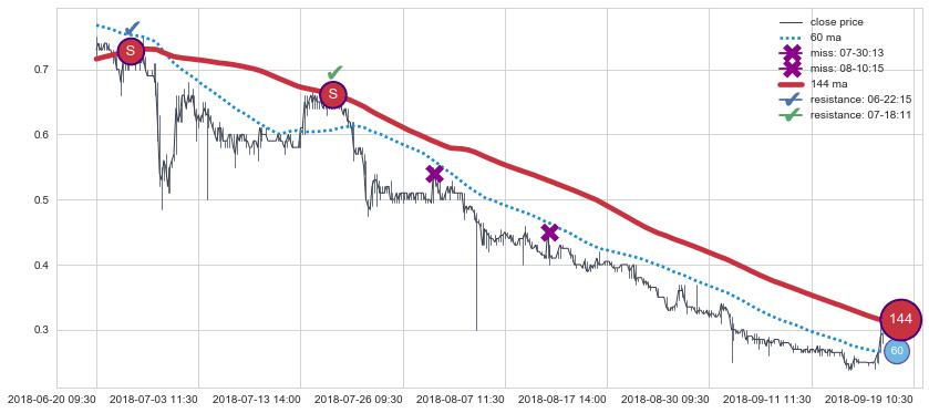 ➢ 120小时均线于(06-27 14:00: 0.223883)形成【金叉】基于【金叉历史模型】预测金叉后最高波峰价格: 0.27339, 金叉后最高价格0.238000,虽然还未上涨超出预测最高波峰价格,但横盘时间过长, 预期回调