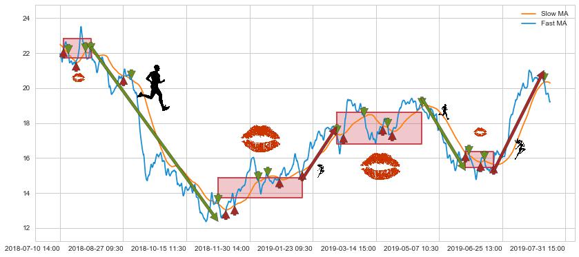 05-28 10:30至06-19 09:30 慢线与快线多次接触,存在上下穿越,有缠绕