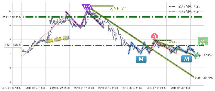 ♘ 阻力价格位7.58,可信任强度84.14%,距离最后交易2019-07-31 15:00形成的收盘价格7.11相差 +6.67%