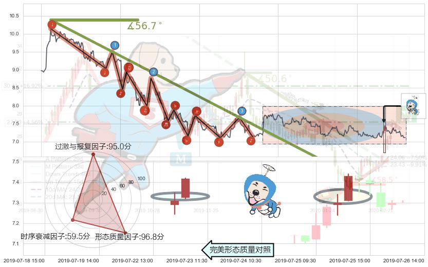 从2019-04-10 09:30至2019-07-25 11:30,共包含423个小时,阶段股价下跌-30.16%,阶段股价变动位移路程比: 1 : 9,下跌趋势角度: 56.7