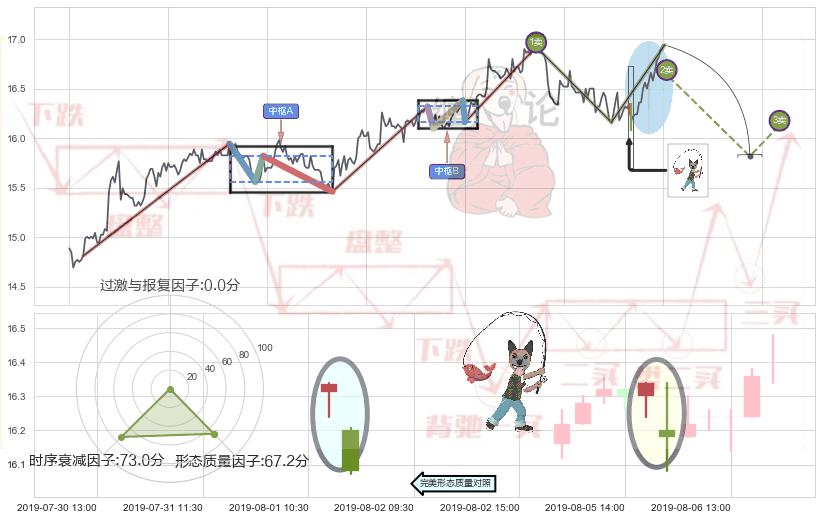 从2019-07-18 09:30至2019-08-02 11:30,共包含69个小时,阶段股价下跌-1.49%,阶段股价变动位移路程比: 1 : 16