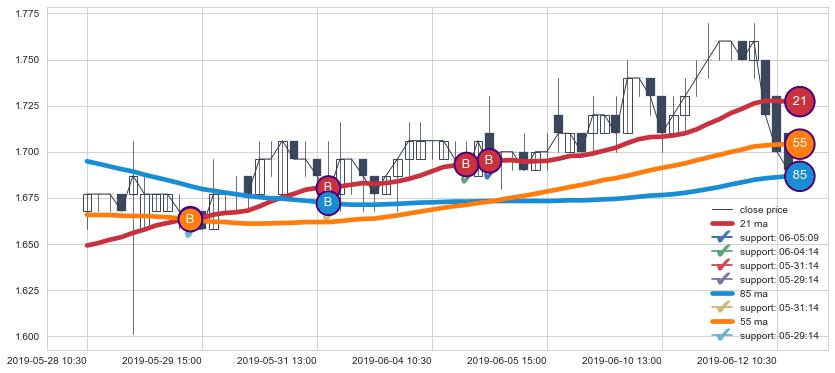 📝 多条均线形成死叉后走势最低价格达到: 1.6800