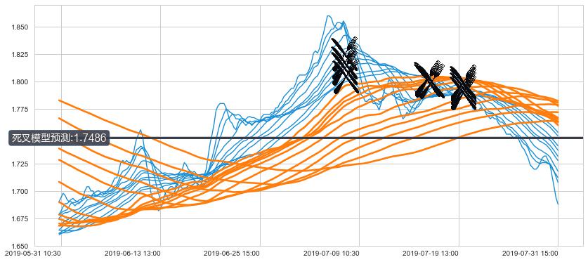 ➣ 70小时均线于(07-19 15:00: 1.7986)形成【死叉】基于【死叉历史模型】预测死叉后最低波谷价格: 1.7489, 死叉后最低价格1.6800,已经下跌超出预测最低波谷价格, 预期反弹