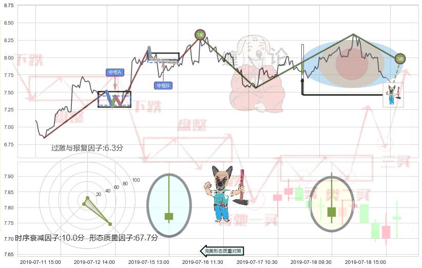 从2019-07-02 09:30至2019-07-10 13:00,共包含40个小时,阶段股价下跌-9.08%,阶段股价变动位移路程比: 1 : 2