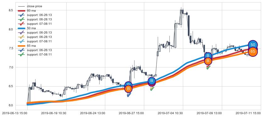 ➢ 最优均线组合共正确确认支撑阻力信号8处,正确确认率 50.00%