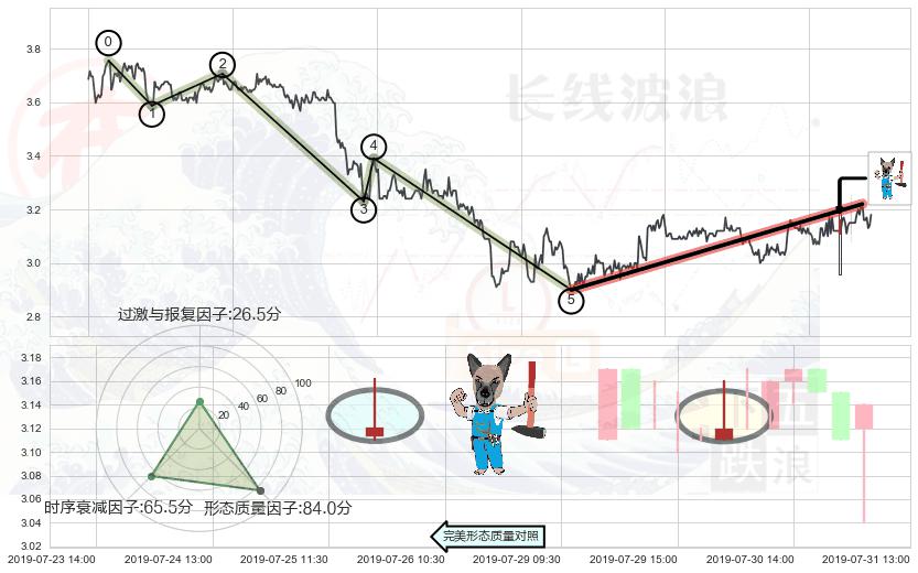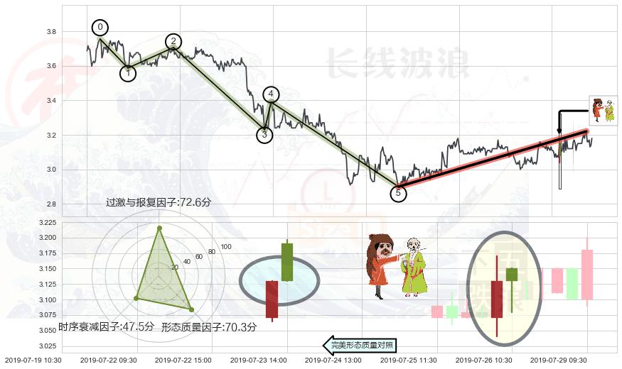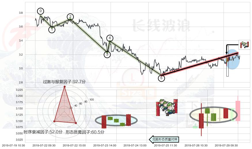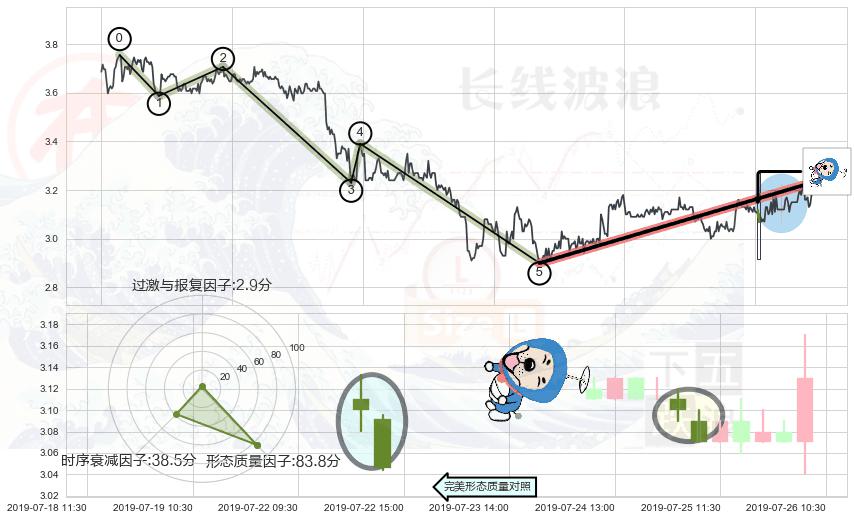 ➢ 🕰 价格走势在2019-07-26 09:30:00至2019-07-26 14:00:00期间形成上升三部曲(升势三鸦),残存影响值:5.52