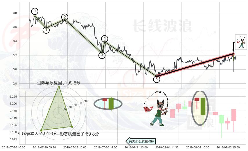 ➢ 🕰 价格走势在2019-08-02 13:00:00至2019-08-02 13:00:00期间形成单针探底(定海神针),残存影响值:8.05