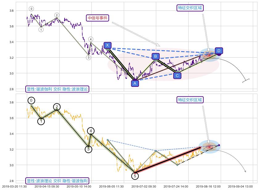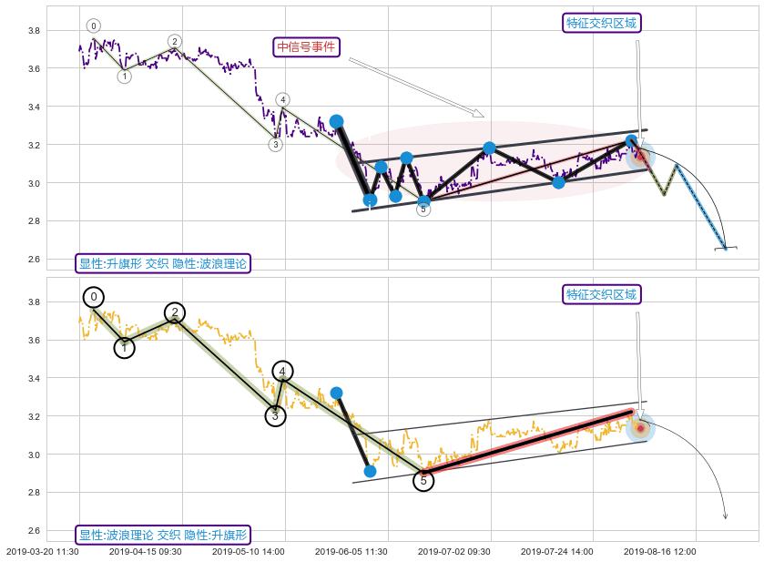 从2019-07-02 15:00至2019-07-11 09:30,共包含38个小时,阶段股价上涨2.60%,阶段股价变动位移路程比: 1 : 4