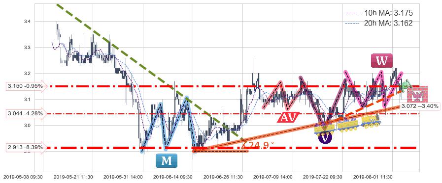 ➣ 预测:2019-09-03 10:00,【小幅回撤】稳定目前上涨趋势的前提下,预测价格:3.177
