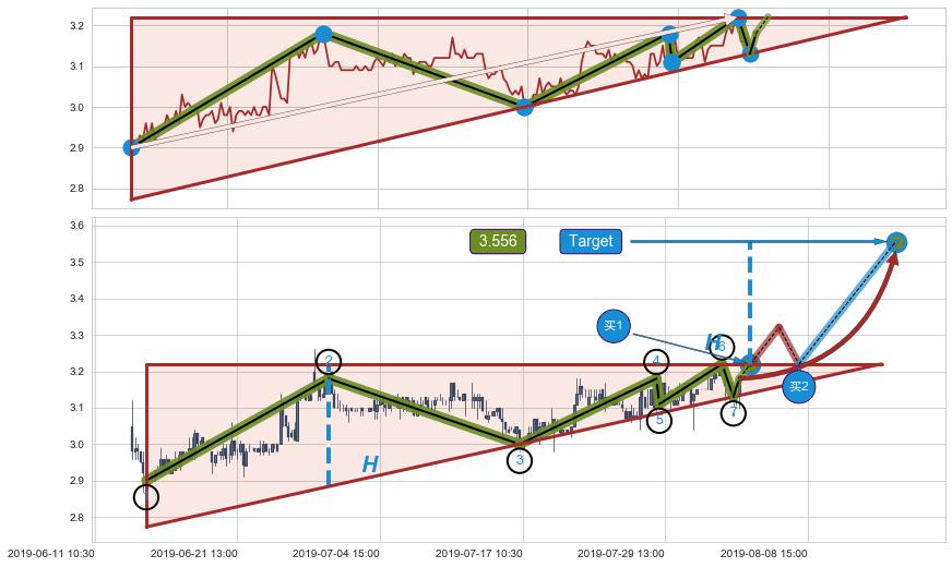 ➣ D点拟合预测价格3.252,距离最后交易收盘价格3.180相差 +2.25%
