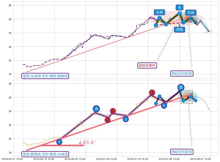 ➢ 头肩顶属【短级别信号事件】趋势线属【长级别信号事件】长短周期组合信号事件, 短长事件长度比23.89%