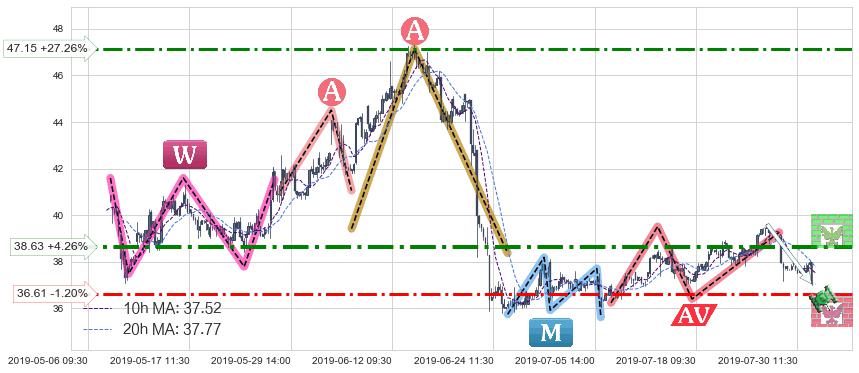 ♘ 阻力价格位38.63,可信任强度77.89%,距离最后交易2019-07-31 15:00形成的收盘价格37.05相差 +4.26%