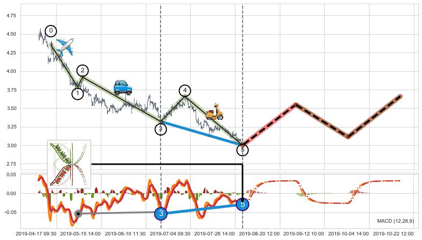 ➣ 第一, 三, 五浪下跌动能逐渐【衰弱变小】,趋势呈现不稳迹象