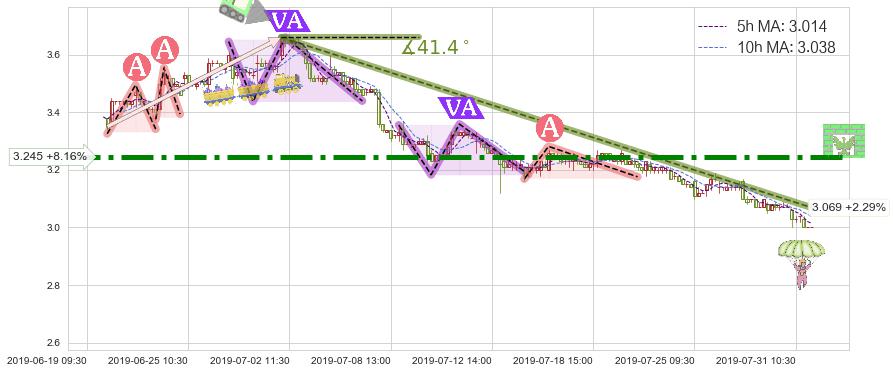 ♘ 阻力价格位3.245,可信任强度92.69%,距离最后交易2019-07-31 15:00形成的收盘价格3.000相差 +8.16%