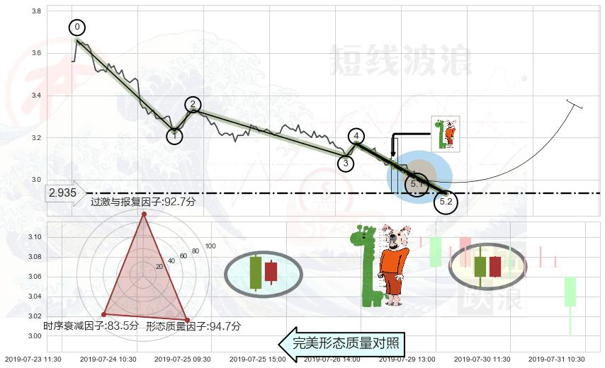 从2019-07-08 10:30至2019-07-16 09:30,共包含36个小时,阶段股价下跌-4.85%,阶段股价变动位移路程比: 1 : 3