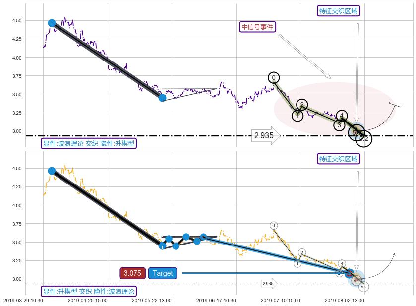 ♘ 在最后的下跌阶段2019-07-02 09:30至2019-07-31 15:00,存在 持续未破位的阻力位 ,阻力价格3.069,可信任强度81.19%,其距离最后价格3.000相差 +2.29%