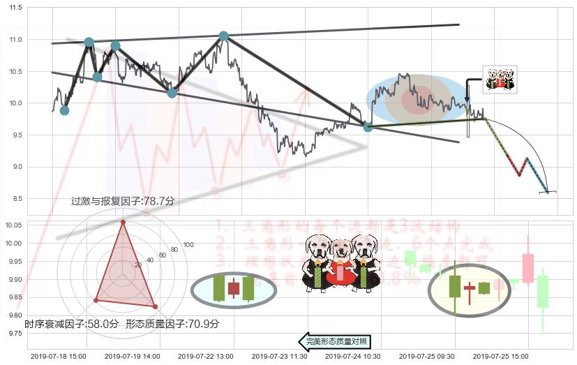 ➢ 🕰 价格走势在2019-07-25 09:30:00至2019-07-25 11:30:00期间形成两黑夹一红,残存影响值:-3.72