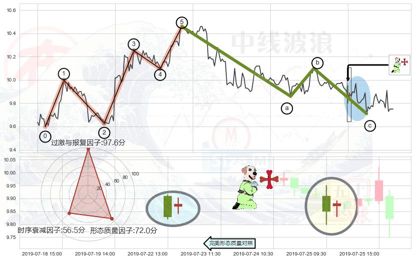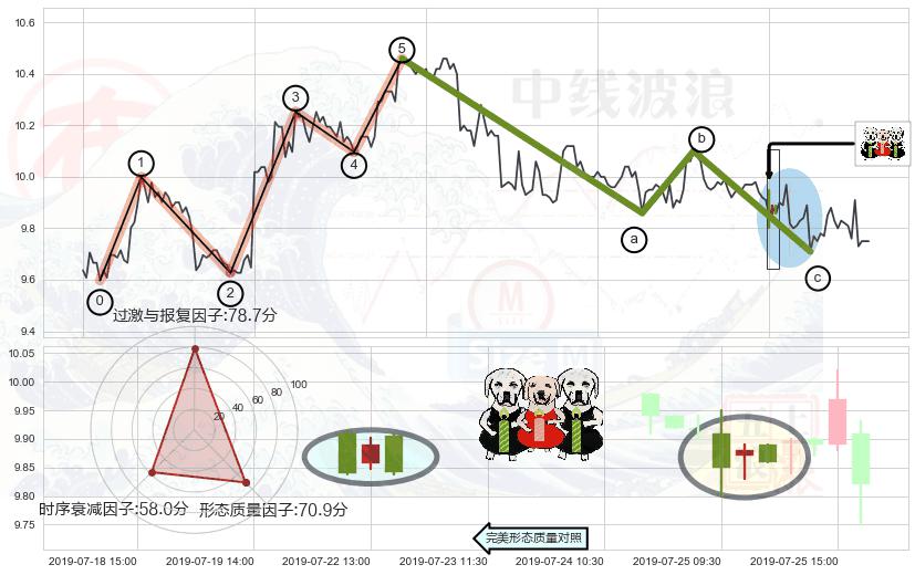 ➢ 🕰 价格走势在2019-07-25 09:30:00至2019-07-25 11:30:00期间形成两黑夹一红,残存影响值:-3.72