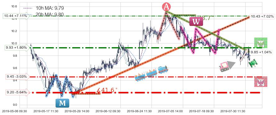 ♞ 10小时均线:9.79,20小时均线:9.80→ 快线<慢线