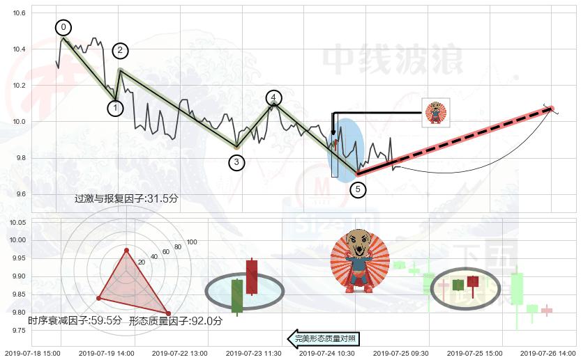 ➢ 🕰 价格走势在2019-07-26 09:30:00至2019-07-26 10:30:00期间形成双针探底,残存影响值:6.80