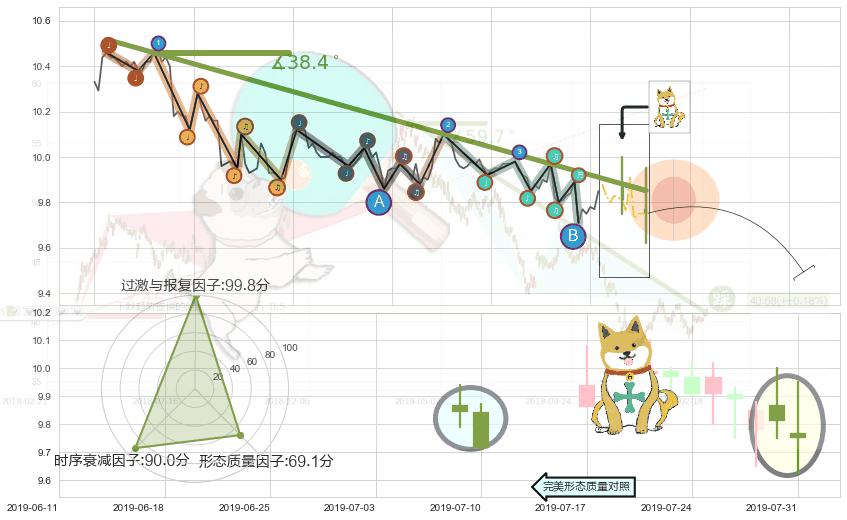 从2019-06-28 10:30至2019-07-31 09:30,共包含132个小时,阶段股价下跌-6.74%,阶段股价变动位移路程比: 1 : 6,下跌趋势角度: 38.4