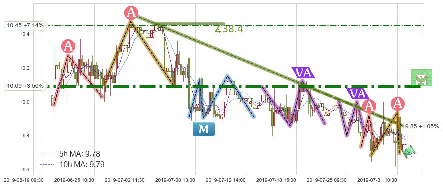 ➣ 预测:2019-08-06 15:00,【试探阻力】稳定目前下跌趋势的前提下,预测价格:9.73