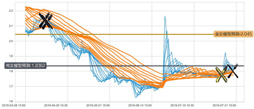 ➢ 55小时均线于(07-31 11:30: 1.7996)形成【死叉】基于【死叉历史模型】预测死叉后最低波谷价格: 1.5942, 死叉后最低价格1.8000,已经下跌超出预测最低波谷价格, 预期反弹