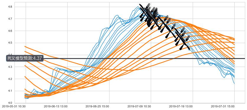 ➣ 120小时均线于(07-15 09:30: 4.60)形成【死叉】基于【死叉历史模型】预测死叉后最低波谷价格: 4.33, 死叉后最低价格4.15,已经下跌超出预测最低波谷价格, 预期反弹