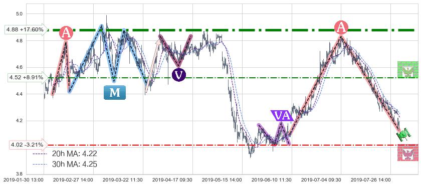 ♘ 阻力价格位4.52,可信任强度51.16%,距离最后交易2019-07-31 15:00形成的收盘价格4.15相差 +8.91%