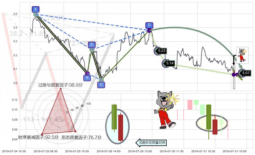 ➢ 🕰 价格走势在2019-07-25 11:30:00至2019-07-25 11:30:00期间形成下降插入线(坠落线),残存影响值:-2.64